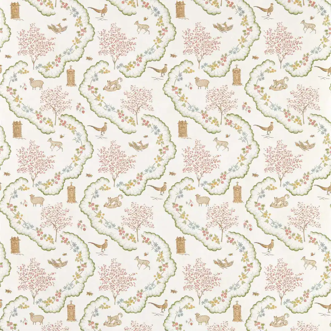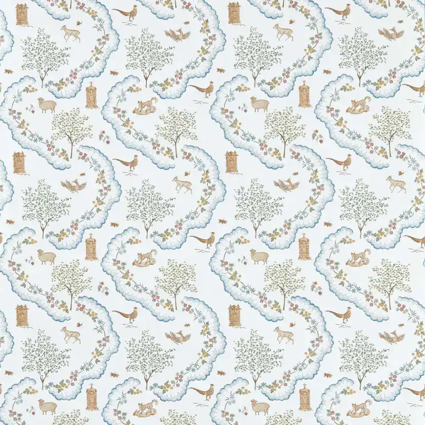 Le modèle Salisbury est l’un des designs les plus sophistiqués de la collection Highgrove by Sanderson. Contrairement aux scènes narratives comme le Ancient Apple Orchard, Salisbury se concentre sur la symétrie et la structure, offrant un motif floral stylisé qui rappelle les ornements architecturaux et les treillis classiques que l’on retrouve dans les jardins anglais les plus prestigieux.