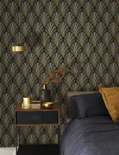 Entrée des Artistes wallpaper by Casadeco offers a unique blend of Art Deco-inspired arches and theatre-like drama. Its green Vert Taiga palette features subtle iridescent accents and matte shading that bring depth and movement to any room. Made on non-woven backing, this wallpaper is washable and installs easily with paste-the-wall application. It is ideal for feature walls in living rooms, hallways, or entertainment spaces. The pattern evokes rising stage curtains and arches, adding sophistication and visual rhythm. Its balanced repeat and refined finish make it a captivating choice for stylish interiors.